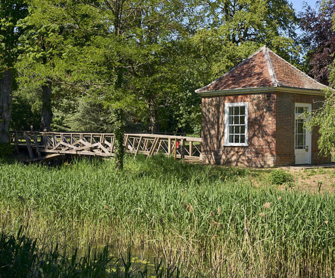 Build large oak footbridge and restore window and door frames, brickwork and cupolas