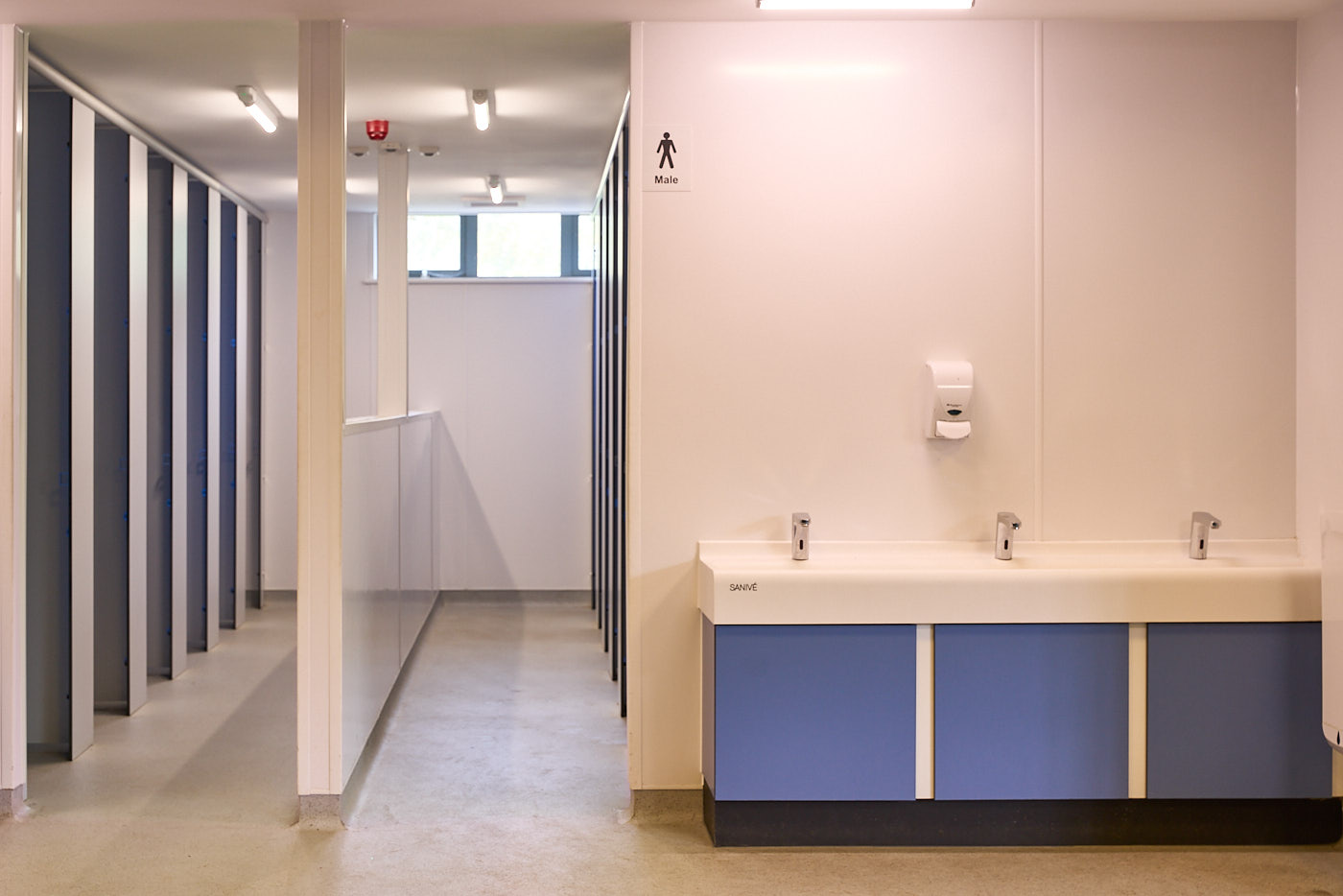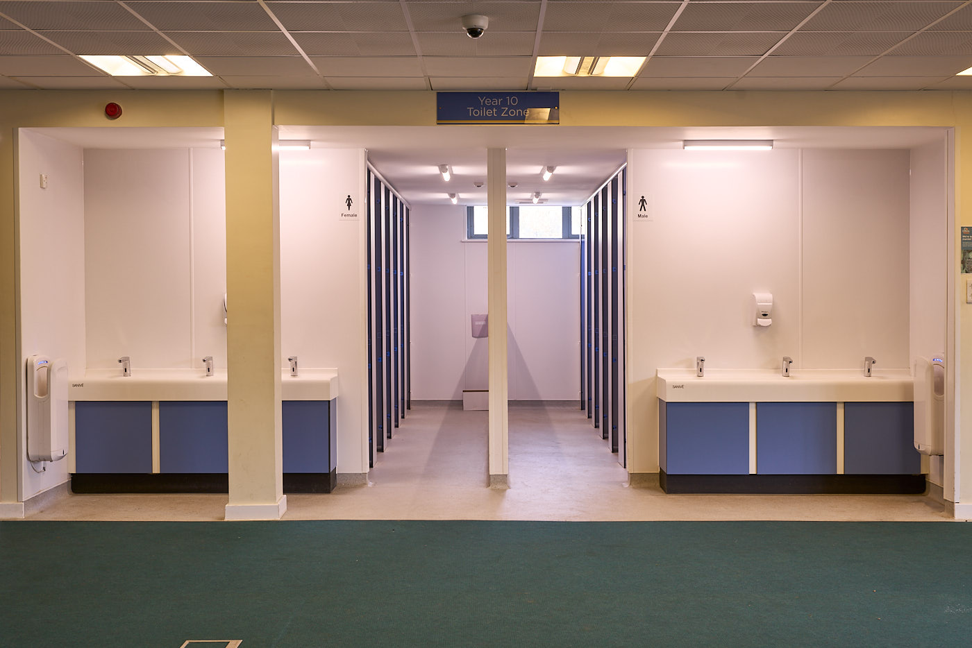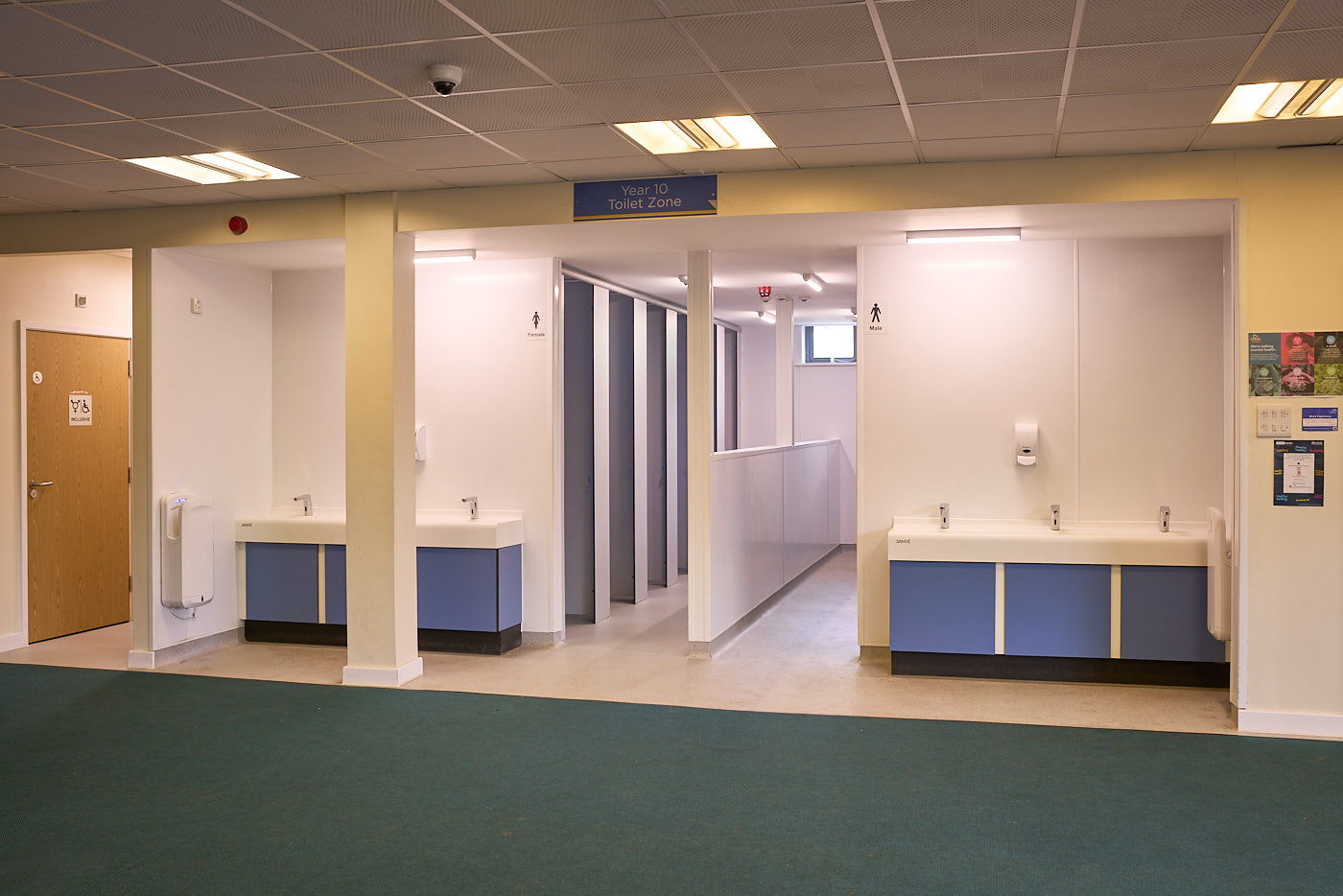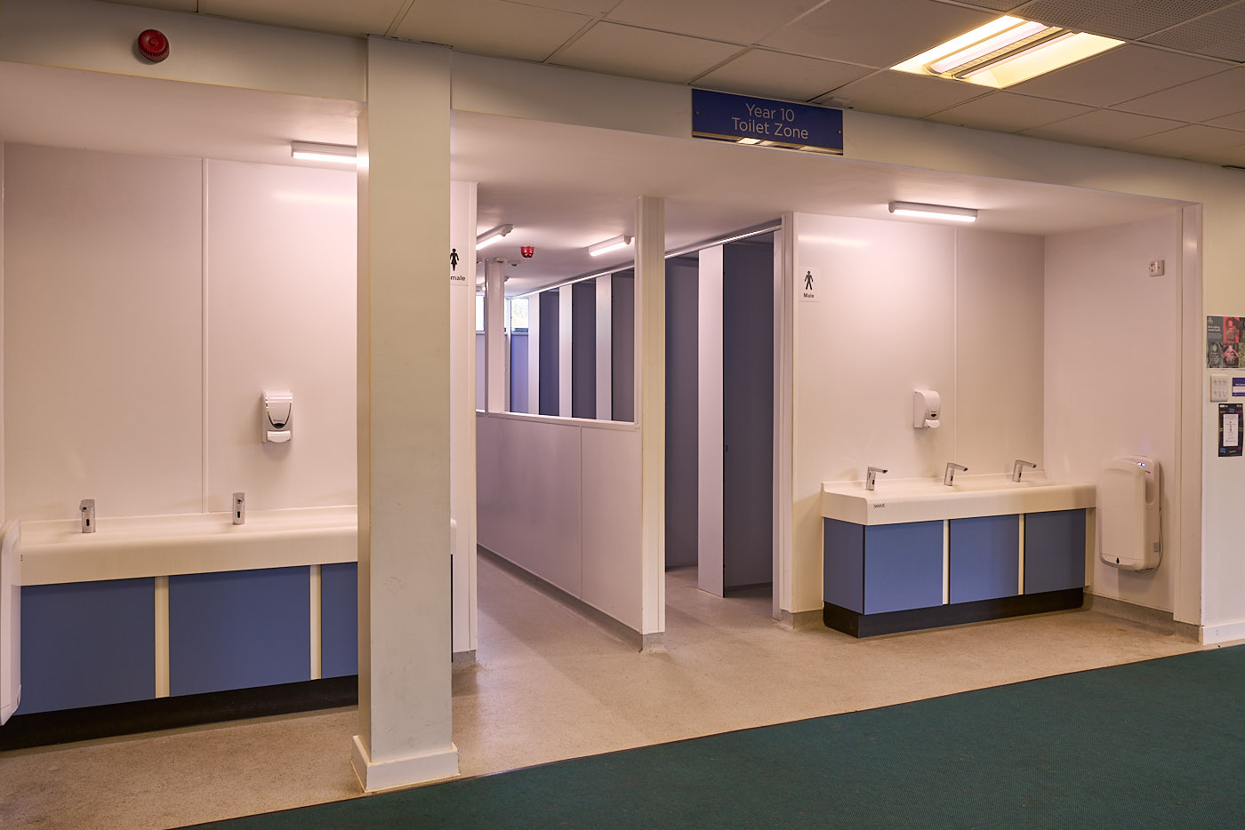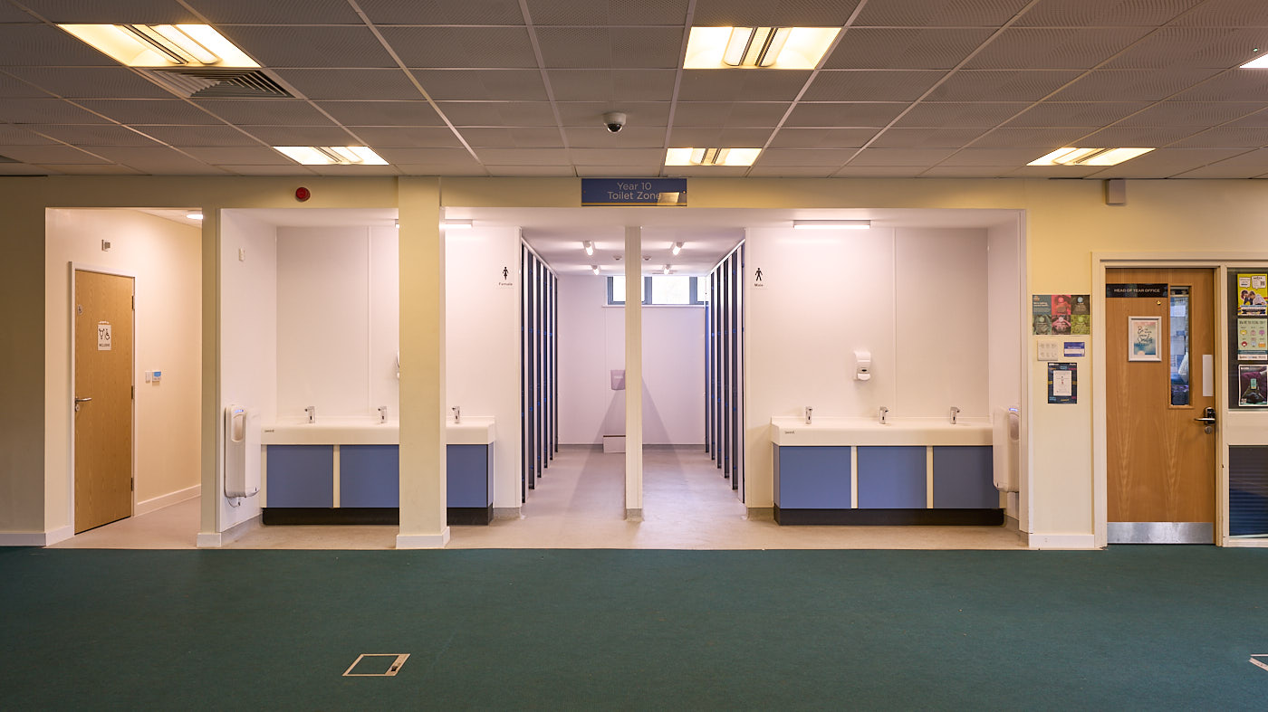 This project involved modernising the toilet areas in the sixth-form block at Kesgrave High School to create a pro-social, open-plan design for males and females. We knocked two separate spaces into one and introduced a central divider. This project also included the creation of a new fully accessible toilet.
