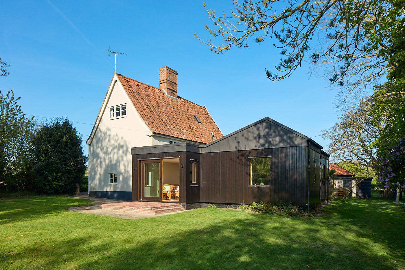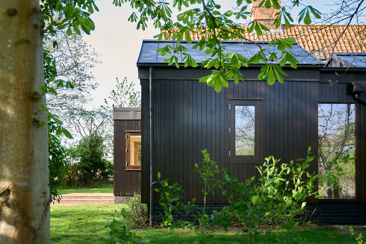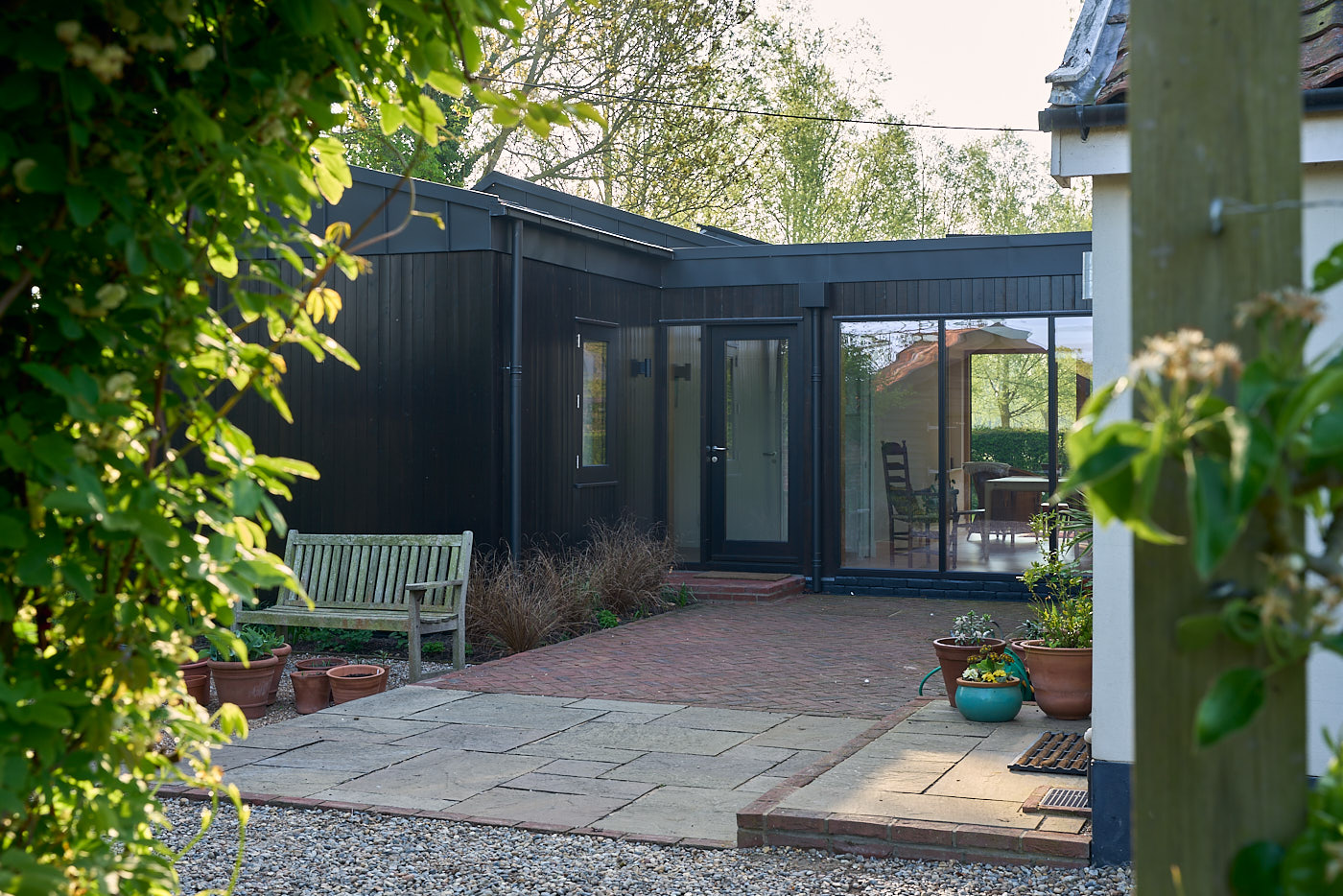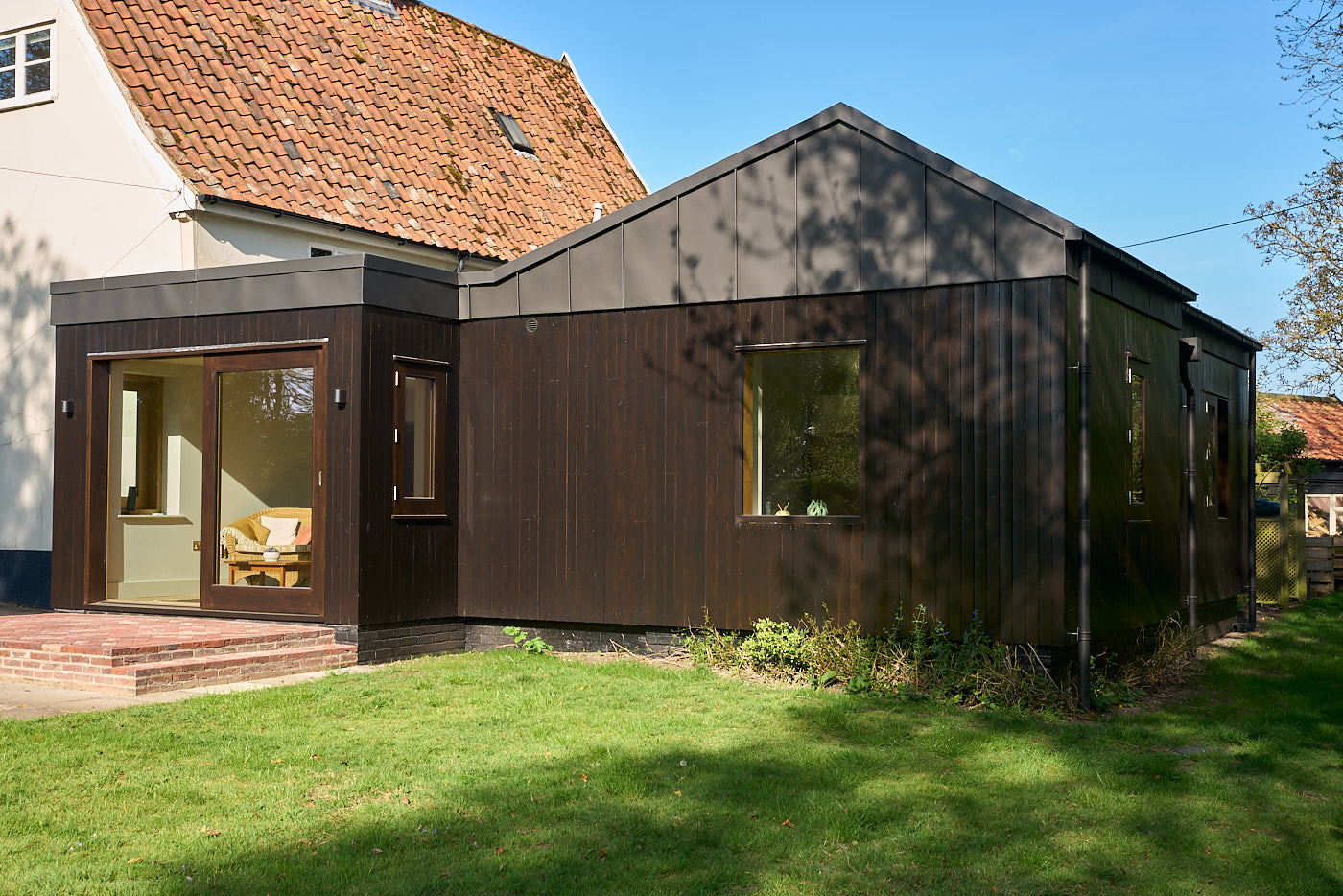 We fitted bespoke timber doors and windows and beautiful engineered timber floors with underfloor heating to complement the traditional country character of the original building whilst allowing it to exceed modern environmental standards. We timber clad and re-insulated all walls and installed a complex zinc roof with hidden guttering. Three discrete sliding doors allow the spaces to be opened up or snugged down as desired.